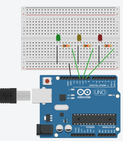총 3개의 LED를 사용하였으며, 저번 포스팅과 마찬가지로 저항은 추가하지 않았다.