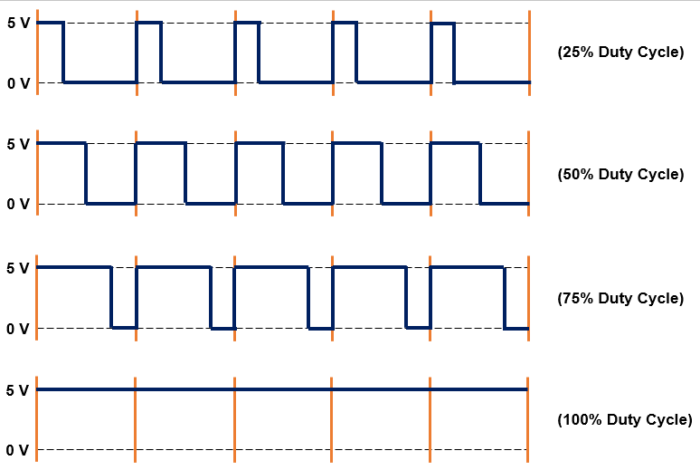Duty Cycle의 퍼센트가 높아질수록 5V 신호를 더 많이 내보낸다고 생각하면 된다.