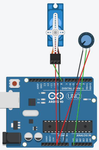 본 실습에서는 가변 저항을 사용하여 가변 저항의 이동에 따라 서보모터를 동일하게 구동시키는 예제를 해보고자 한다.