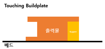 위의 Everywhere와 달리, Support가 필요한 형상 아래에 바로 베드가 있는 경우에만 Support 형상을 출력하는 방법이다.