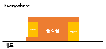위 사진에서 볼 수 있듯이 Support가 필요한 형상의 아래에 또 다른 출력 부분이 있는 경우와 바로 베드가 있는 경우 모두 Support를 출력하는 것이다.
