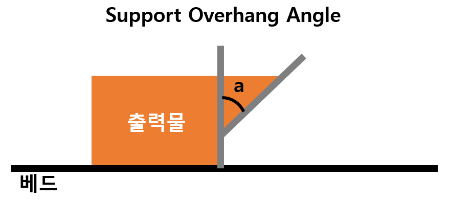 출력 형상 중 Support를 적용할 각도를 정하는 설정이다.