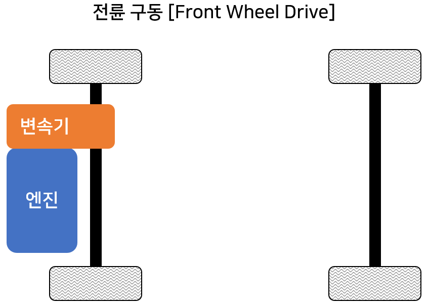 차량의 앞 쪽에 엔진을 장착하고, 앞쪽 두 바퀴가 주 구동륜이 되어 차량을 움직인다.