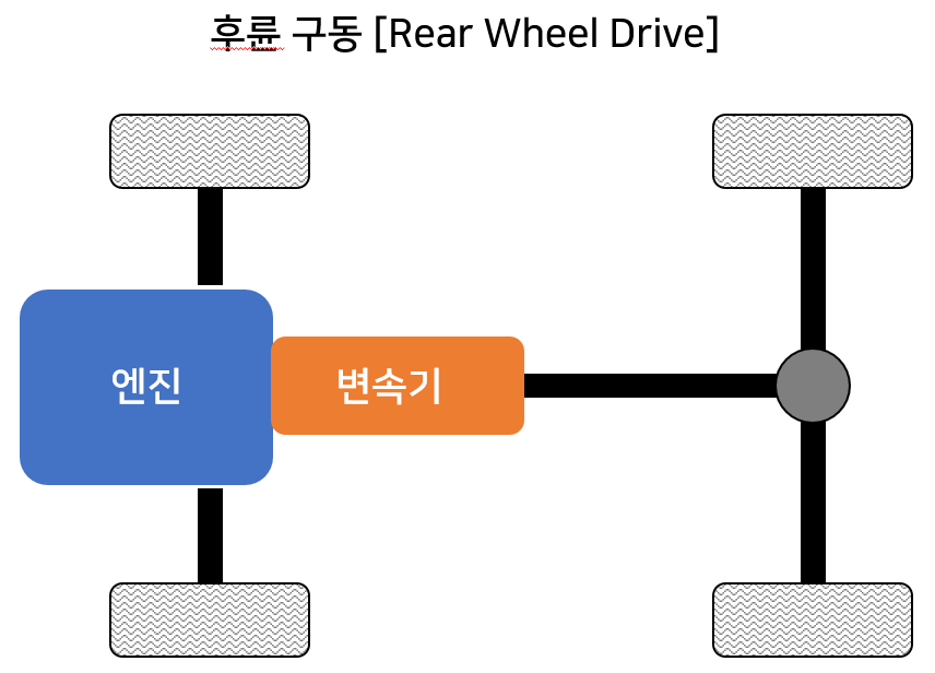 '후륜 구동' 차량이라고 표현하는 시스템이며, 차량의 앞 쪽에 엔진을 장착하고, 뒤쪽 두 바퀴가 주 구동륜이 되어 차량을 움직이다.