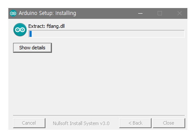 설치 중간에 USB 드라이버 설치에 관한 알림 창이 뜨는데, 아두이노 보드를 컴퓨터와 연결할 때 필요한 드라이버이기 때문에 설치 버튼을 눌러주면 된다.