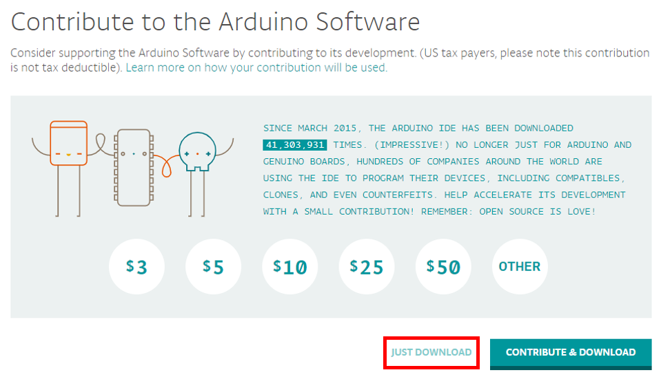 아두이노 IDE 프로그램은 오픈 소스 기반이기 때문에 공식 홈페이지에서 누구나 무료로 다운로드할 수 있다.