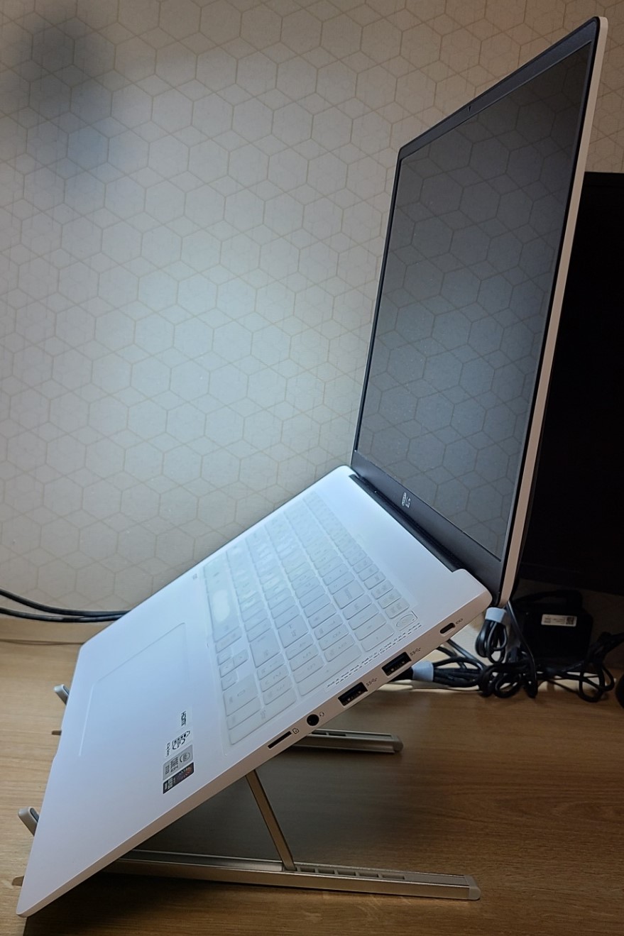 대신 필자는 위 사진에서 보이는 노트북 하단의 공간에 눈에 보이면 지저분한 물건들 몇 개를 숨김으로써 책상을 보다 깔끔하게 사용하는데 활용하고 있다.(^^)