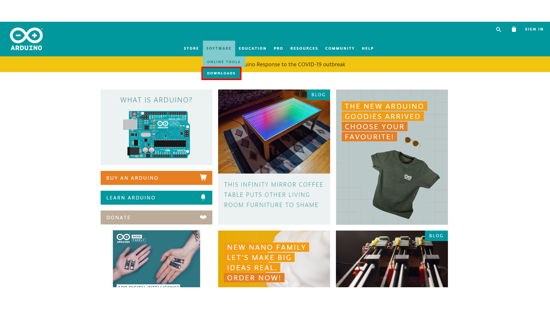 아래의 아두이노 공식 홈페이지에 접속하게 되면,